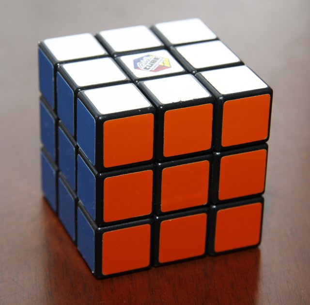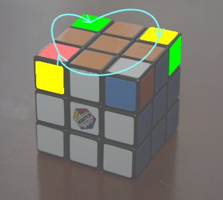 Le but étant de positionner la couleur (orange) des 4 arrêtes du haut vers le haut, mais pas nécessairement à la bonne position. |