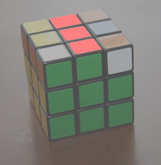 Tourner le cube de façon à ce que l'arrête juste soit à gauche, comme indiqué.
